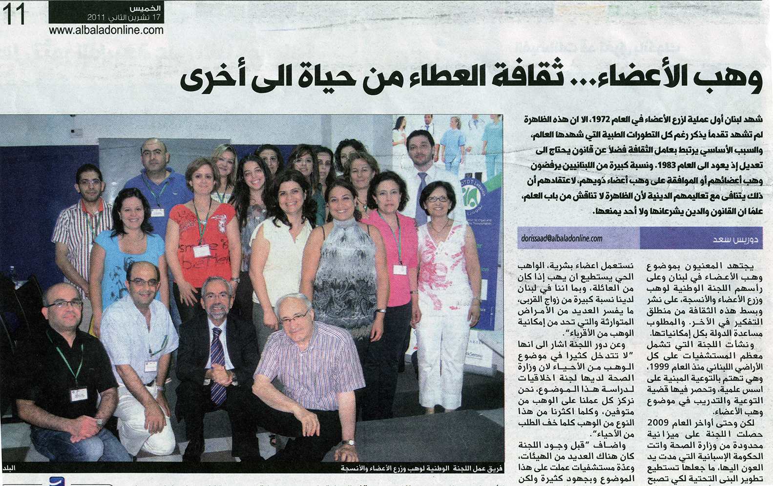 Albalad Online: وهب الأعضاء... ثقافة العطاء من حياة الى أخرى
